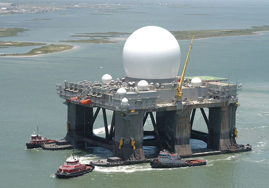 SBX-1 ở khu vực biển Thái Bình Dương. SBX-1 có khả năng xác định chính xác mục tiêu cách xa 2.000km, xa gấp 2 lần khả năng phát giác của tàu khu trục.