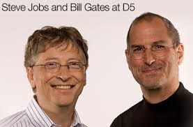Steve Jobs và Bill Gates tại hội thảo D: All Things Digital (D5) năm 2007. Năm 1976, khi Jobs 21 tuổi và Wozniak 26 tuổi, họ sáng lập công ty Apple Computer trong garage nhà Jobs. Sản phẩm đầu tiên của họ là máy tính cá nhân Apple I. Năm 1977 Apple tung ra sản phẩm tiếp theo, Apple II, một thành quả to lớn đã làm nên tiếng vang cho một công ty còn non trẻ Apple. Năm 1980 Jobs và Wozniak trở thành triệu phú. Họ đã phát triển công ty chỉ 2 người thành một công ty tầm cỡ quốc tế với cả ngàn nhân viên khắp toàn cầu.